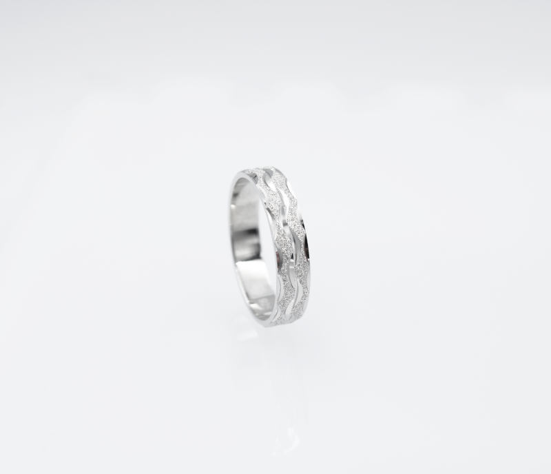 + Envío (GRATUITO a partir de 49€)Alianza en Plata de Ley 925 Rodiada Unisex en 4 mm. Con un labrado con forma de olas en brillo combinado con un fondo picado mate