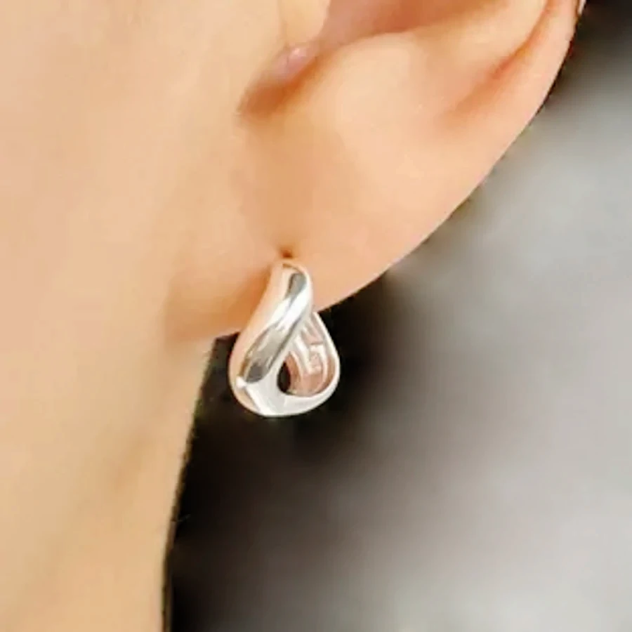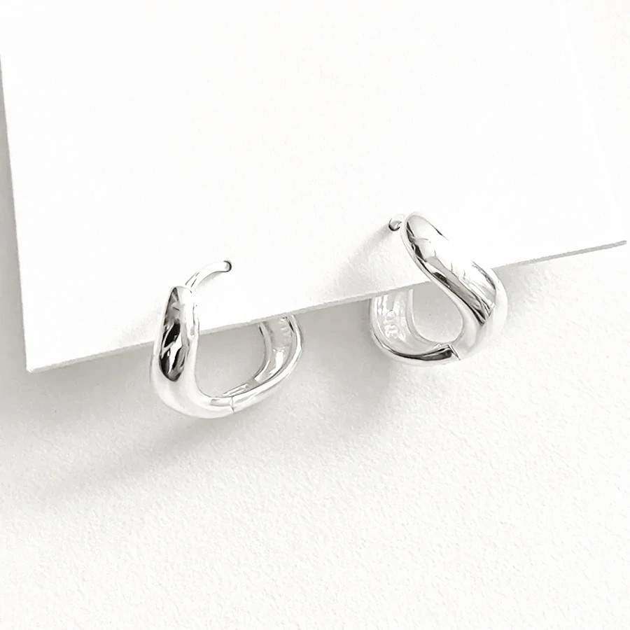 + Envío (GRATUITO a partir de 49€)Aros pequeños y desiguales tipo abrazaditos, en Plata de ley 925, con práctico cierre de clic. minimalista, cómodos y perfectos para llevar a diario o combinar con otros pendientes