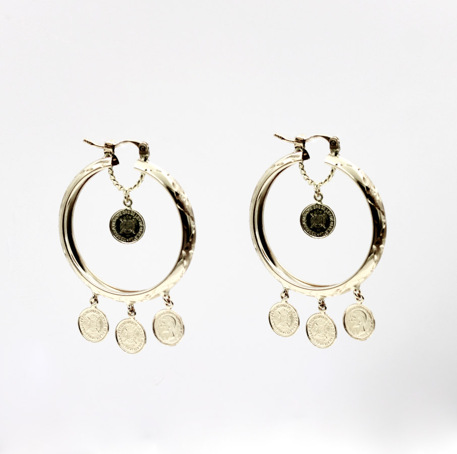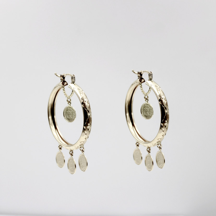 Los aros con monedas colgadas destacan por su movimiento ligero y su estética vintage. El brillo metálico de las monedas aporta carácter y dinamismo, convirtiéndolos en una pieza ideal para elevar looks casuales o dar un toque sofisticado a ocasiones especiales. Accesorios versátil, auténticos y con personalidad, pensados para mujeres que buscan joyería con estilo propio y presencia
