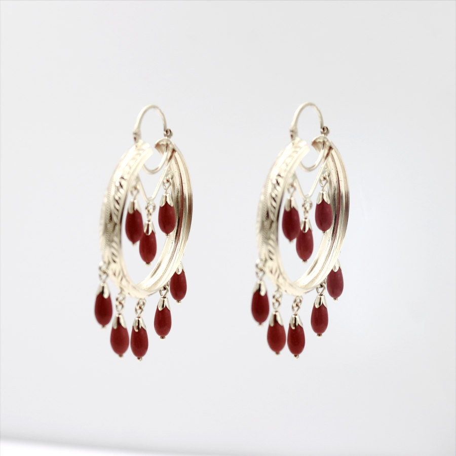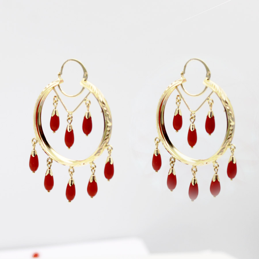 Los aros de Oro con corales en forma de lágrimas ofrecen un contraste cálido entre el brillo del oro y el tono rojizo característico del coral. Su acabado artesanal y su silueta en lágrima aportan elegancia discreta, frescura y un estilo natural, perfectos para realzar looks sofisticados o casuales. Una joya con presencia, color y diseño único, ideal para mujeres que buscan accesorios exclusivos y con carácter