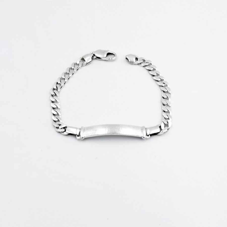 + Envío (GRATUITO a partir de 49€)Esclava modelo de eslabón Barbada con chapa matizada para grabar un recuerdo para siempre. Un clásico que siempre lucirá con orgullo