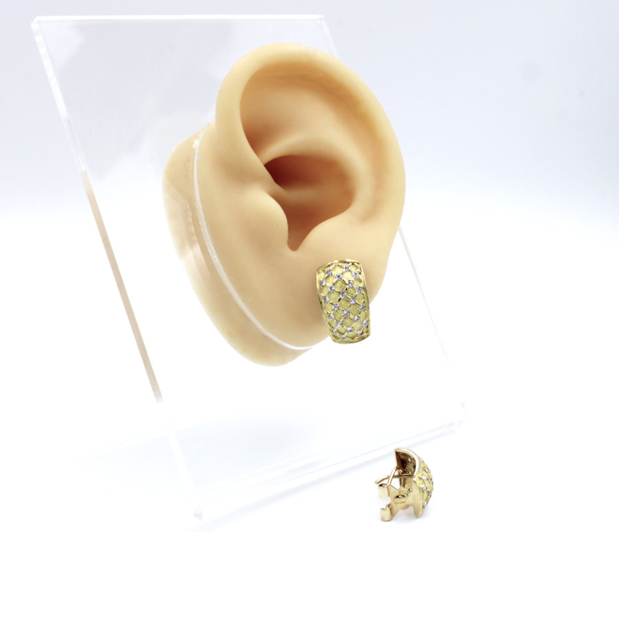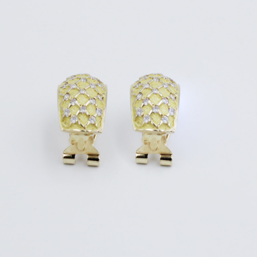 Pendientes Rectangular en Oro y Circonitas. Cierre Omega