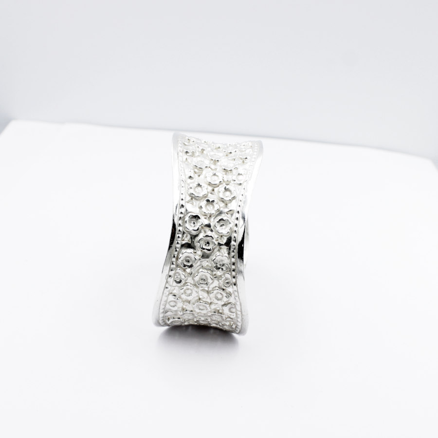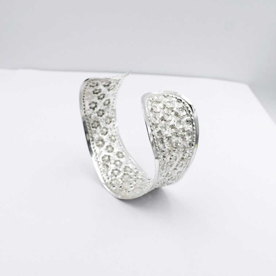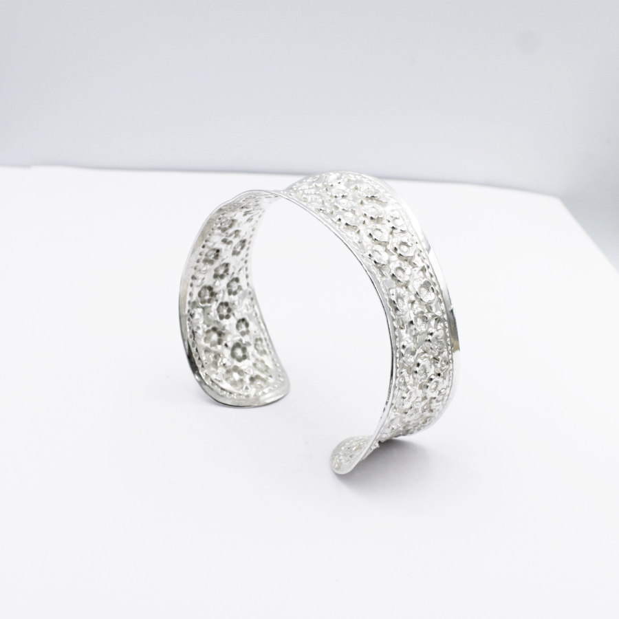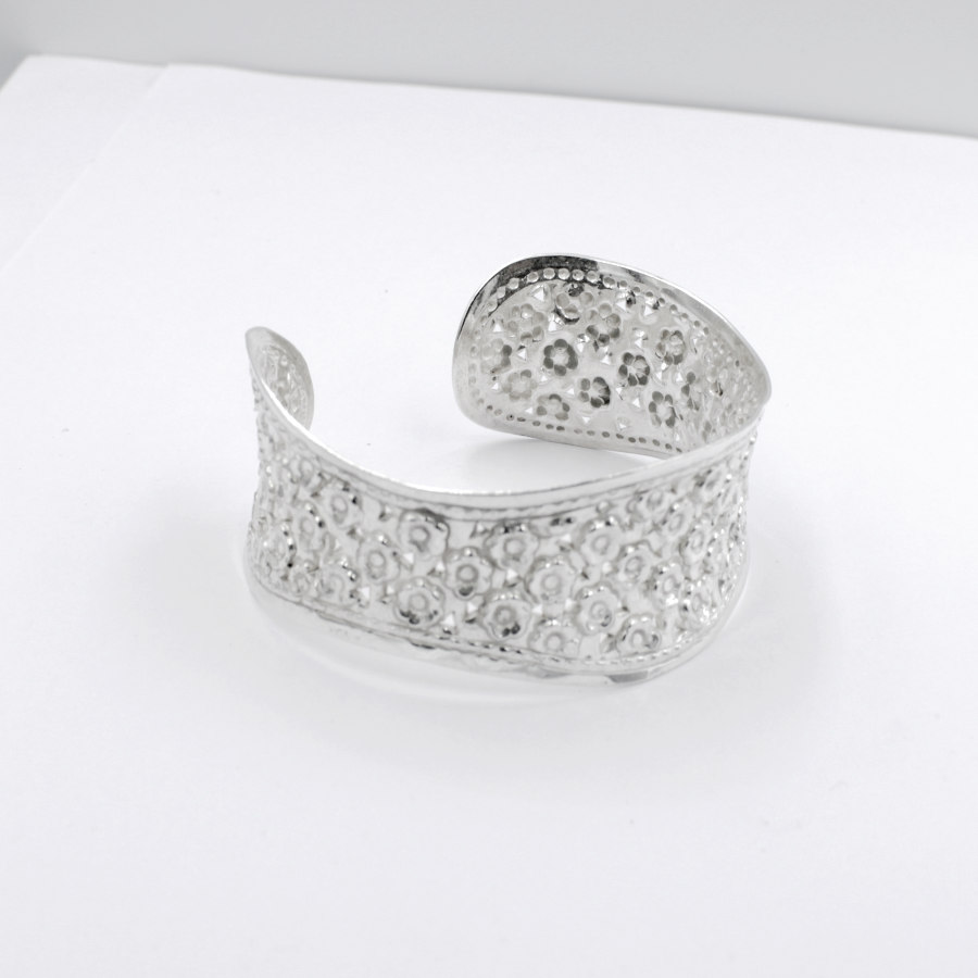 Pulsera Boho chic tallada Rígida abierta en Plata Ley 925